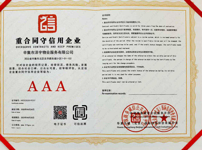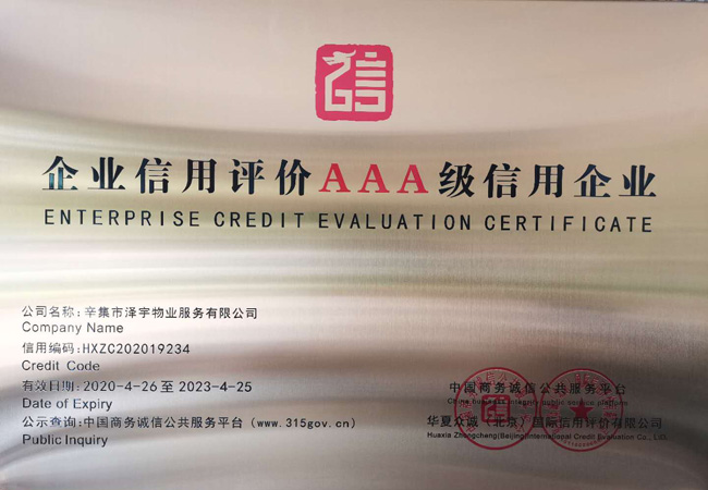 企業(yè)信用評價AAA級信用企業(yè) |